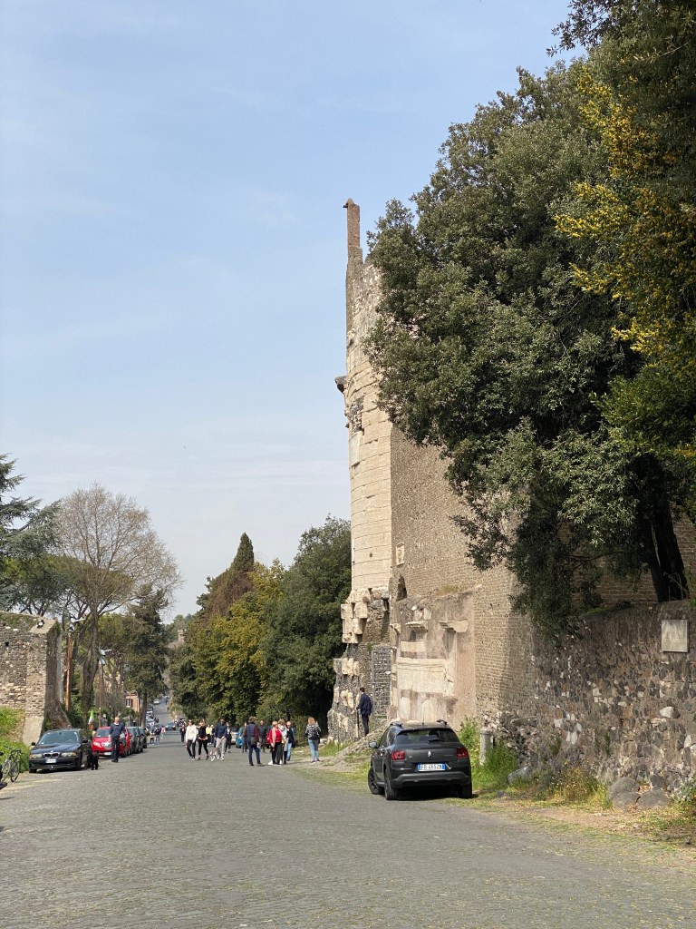 And what a sight it was. Of course, the pictures don’t do it justice, but in my opinion it does live up to all the hype and despite the difficulty at the entrance (or more probably because of it) we nearly had the place to ourselves. After a few wonderful hours at the Colosseum we wandered over to take in the Forum. From Palatine Hill we had sweeping views of the entire complex below us while Kate kept up a steady stream of ancient Roman history for us to absorb. From there, Kate had arranged for us to meet up with a driver who took us to see the beautiful Appian Way. Originally built in 312BC to supply Rome’s burgeoning military, it’s now open mainly to local foot and bicycle traffic. We strolled a little way, admiring the carpet of spring wildflowers and charming road side restaurants.